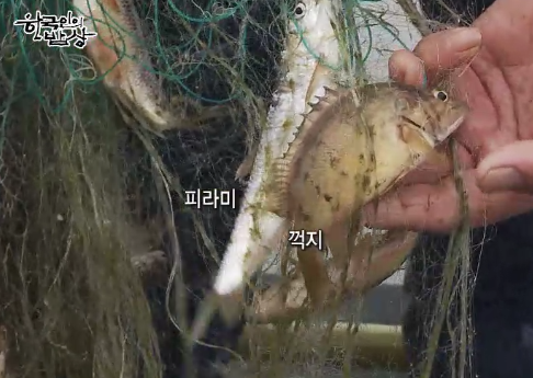 피라미, 꺽지, 갈겨니, 모래무지 등을 잡습니다.