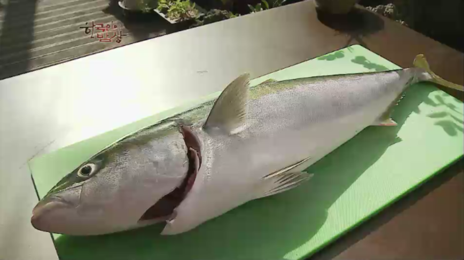 방어는 배를 갈라서 큰뼈는 빼내고 칼집을 내서 소금 간을 한 뒤 꼬들꼬들하게 이틀 정도 말립니다.