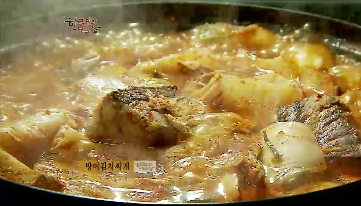 ‘방어 김치찌개’는 방어를 손질해서 큼지막하게 토막을 내서 김치를 넣고 끓이다가 두부를 올려 끓입니다.