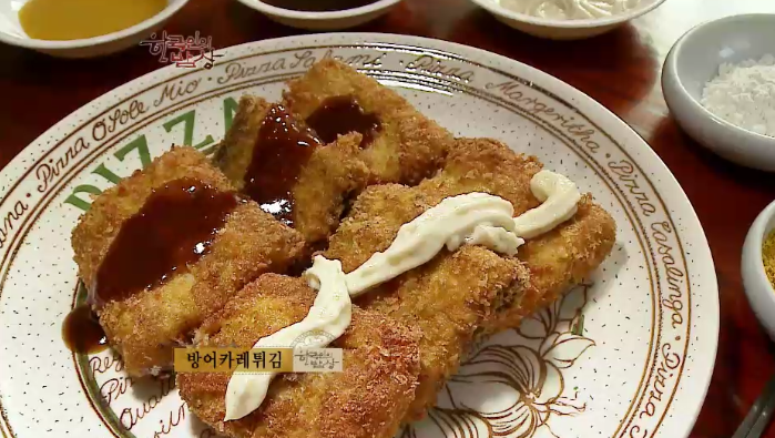 ‘방어카레튀김’은 방어살을 살짝 소금을 뿌려 간을 해놓고 밀가루와 카레가루를 섞은 다음 방어살에 묻히고 계란옷을 입힌 뒤 빵가루를 묻혀 튀겨냅니다.