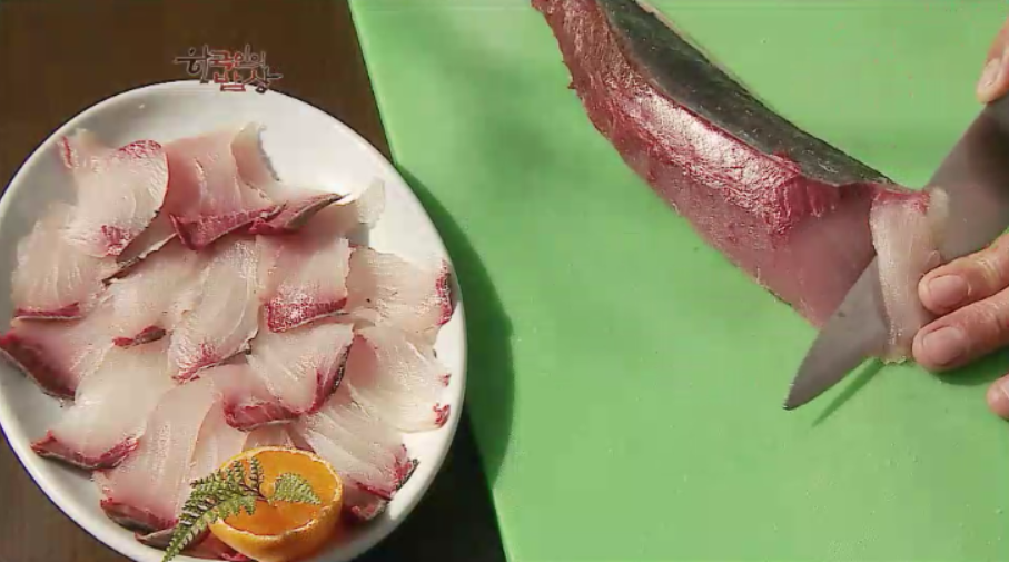 ‘방어회’는 방어는 껍질을 벗긴 뒤에 도치로 살짝 그을러서 삼각형형태로 크게 떠서 먹어야 맛있다고 합니다.