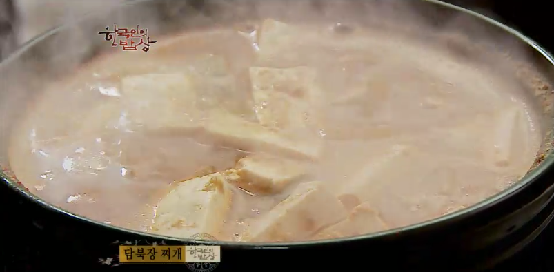 ‘태백 담북장찌개’는 나박하게 썰은 무를 깔고 다진파, 냉이를 넣고 청국장과 된장을 섞어서 넣은 뒤 물을 붓고 연탄불에 은근하게 끓입니다. [콩가루를 넣는 집도 있습니다.] (담북장은 된장이 익기 전에 빨리 해먹는 장입니다.)