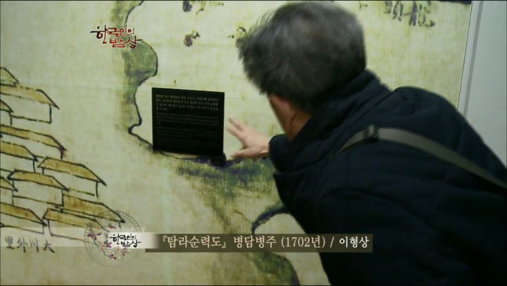 『탐라순력도』는 이형상 목사가 1702년도에 제주도를 한 바퀴 돌면서 각 지역마다 특색을 그림으로 표현했는데 이곳은 용두암이라고 우리가 잘 알고 있는, 용두암에서 해녀 다섯 명이 물질하는 장면을 그려놨습니다.