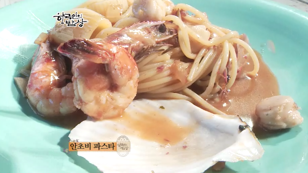 ‘엔초비파스타’는 양파다진 것과 엔초비를 넣고 볶다가 해산물을 넣고 만듭니다.