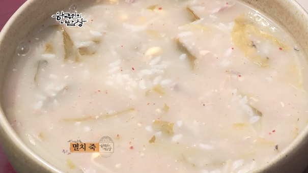 ‘멸치죽(기장말로 국죽)’은 시래기를 불려서 된장을 넣고 많이 치대야야 맛이 납니다. 추어탕과 비슷하게 끊입니다. 끊는 물에 콩나물 넣고 주무른 된장시래기 넣고 끊이다가 불린 쌀을 넣습니다. 그리고 멸치를 넣고 쌀이 푹 퍼질 때까지 기다리기만 하면 됩니다. 멸치죽은 곡식이 귀했던 어촌 마을에서 보릿고개를 넘기는 고마운 음식었습니다.