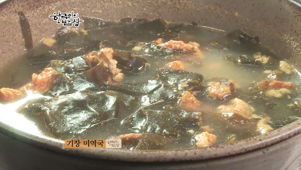 ‘기장 미역국’은 미역을 잘 빨아서 물에 넣고 삶다가 싱싱한 성게알을 넣어서 기장 앞바다의 풍미를 느끼게 해줍니다.