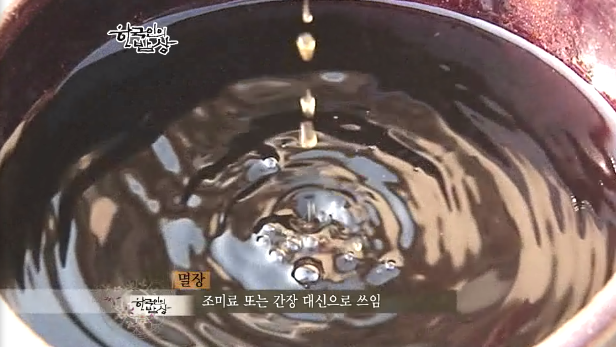 ‘멸장’은 멸치 삶은 물을 솥에 넣고 다시 끊입니다. 그리고 버섯, 양파, 파를 등 맛내는 야채를 넣고 끊이다가 다시마를 넣고 달여서 건더기를 건져내고 된장과 간장을 넣고 다시 졸여서 항아리에 넣어서 보관합니다. 멸장을 한 번 만들어 놓으면 활용도가 높은데 나물 무칠 때 등 조미료 또는 간장 대신으로 쓰입니다.