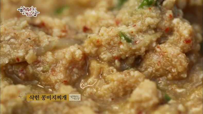 ‘삭힌 콩비지찌개’는 삭힌 콩비지에 멸치육수를 넣고 콩나물 조금, 매운 고추를 다져서 넣은 뒤 끊입니다. 고춧가루, 다진마늘을 넣어 한 번 더 끊입니다.