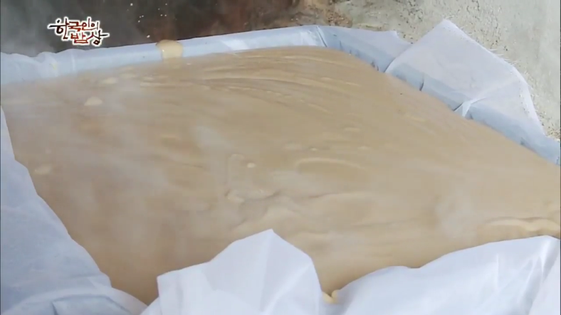 ‘삭힌 콩비지’는 두부 나올 때 나오는 콩비지도 따뜻한 아랫목에서 1~2일정도 발효시킵니다.