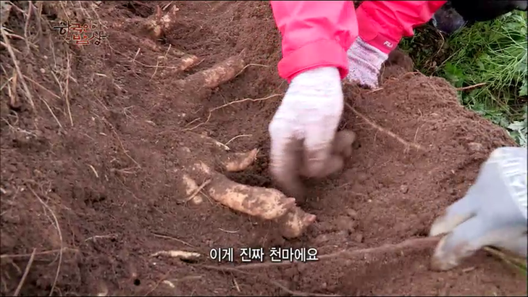 천마는 청정지역에서만 자랍니다. 안성면에서 한 해 생산하는 것이 500톤 전국 생산량에 50%라고 합니다. 천마는 참나무의 진액을 빨아먹고 큽니다. 땅에서는 수분만 공급을 받고 영양공급은 참나무에서 받습니다. 이 균사가 뽕나무 버섯 균과 참나무에 있는 진액을 천마와 연결시켜주는 젓줄 역할을 합니다. 천마는 스스로 자생하지 못하고 다른 식물의 힘을 빌어서 크는 습성 때문에 하늘에서 키워 준다고 말합니다. 그래서 하늘에서 내려준 신의 선물이라 말합니다. 마는 점액이 나오지만 천마는 점액이 거의 없습니다.