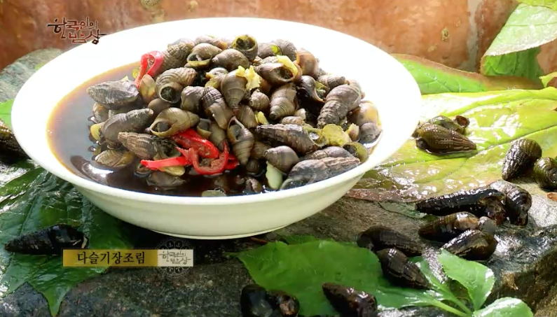 ‘다슬기장조림’은 다슬기를 깨끗이 씻어 솥에 넣고 자작하게 물을 붓고 끓입니다. 그리고 다슬기를 건지고 간장, 된장을 푼 다음 끓으면 다슬기와 다진마늘, 홍고추를 송송썰어 넣고 조립니다.