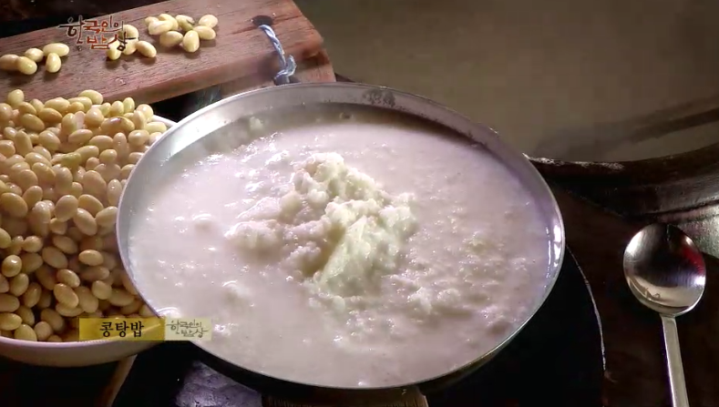 ‘콩탕밥’은 맷돌에 블린 메주콩을 갈아 솥에 넣고 감자를 깎아 체를 썰어 넣고 불린 쌀을 넣은 뒤에 끓입니다.