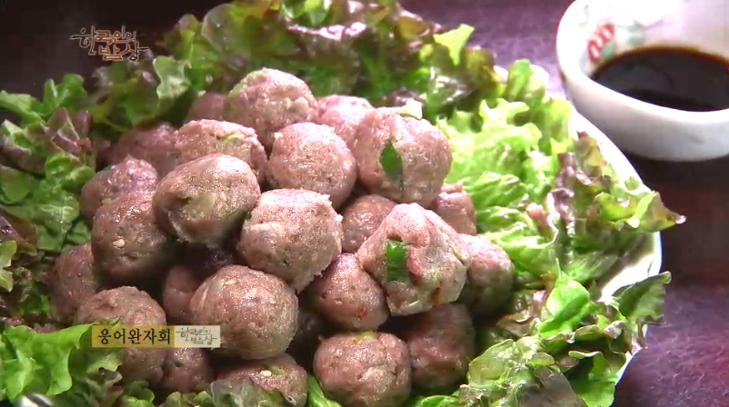 ‘웅어완자회’는 웅어를 머리와 내장, 지느러미를 잘라내고 가운데 뼈를 발라냅니다. 그래서 머리와 뼈를 곱게 다져서 전분을 조금 넣은 뒤에 둥글게 빚습니다.