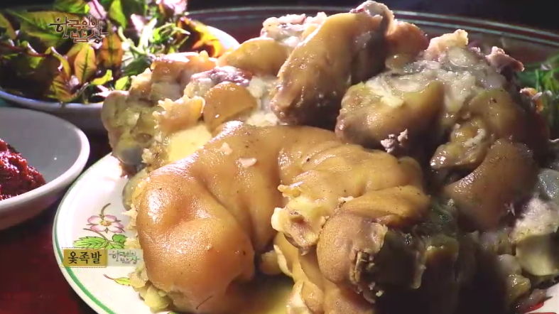 ‘옻족발’은 돼지족에 옻나무를 넣고 푹 고아줍니다.