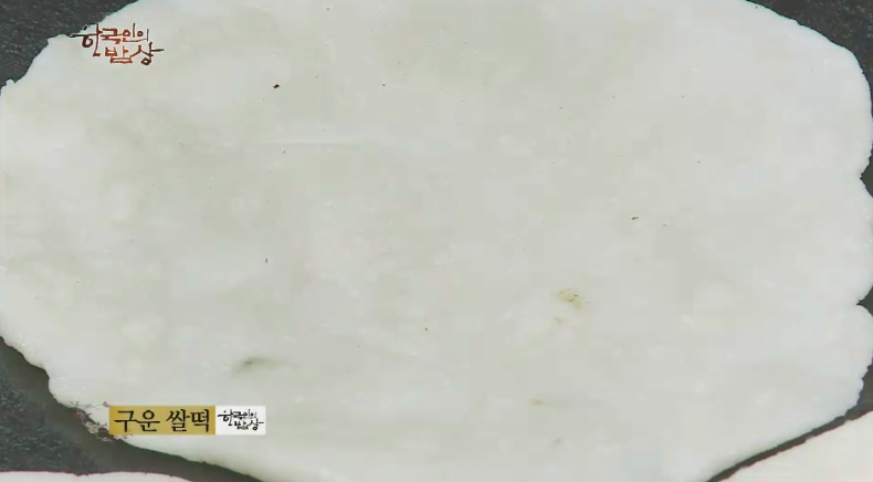 ‘구운쌀떡’은 찹쌀가루와 맵쌀가루를 섞어 반죽을 한 뒤 그리고 넙쩍하게 모양을 잡고 솥뚜껑 위에 참기름을 바르고 눌러가면 굽습니다.