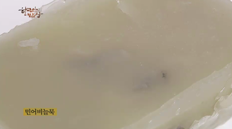 ‘민어비늘묵’은 민어비늘을 잘 씻어 물에 넣고 2~3시간 푹 고아서 식힙니다.