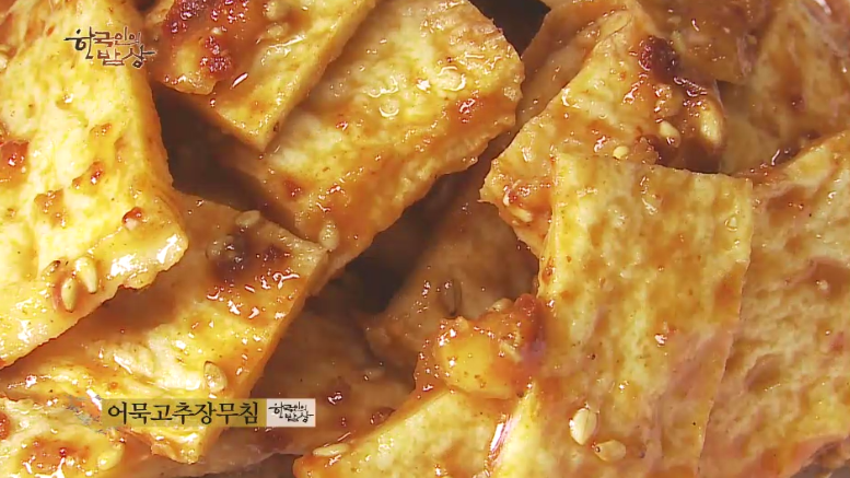 ‘어묵고추장무침’은 어묵에 고추장, 고춧가루, 깨를 넣고 잘 무쳐줍니다.
