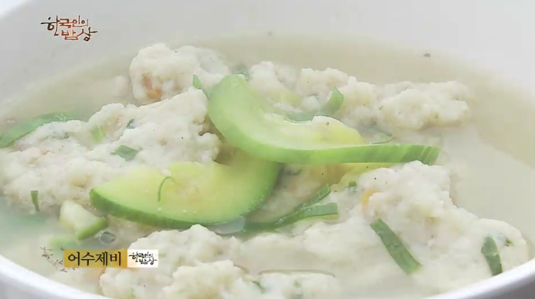 ‘어수제비’는 병어를 살만 골라내서 다진 뒤에 당근, 쪽파를 다져서 후추, 소금을 넣은 뒤에 잘 섞은 뒤에 달걀넣고 전분을 넣고 잘 섞어줍니다. 그리고 육수를 끓여서 애호박을 썰어 넣고 반죽을 수제비처럼 띄어서 넣습니다.