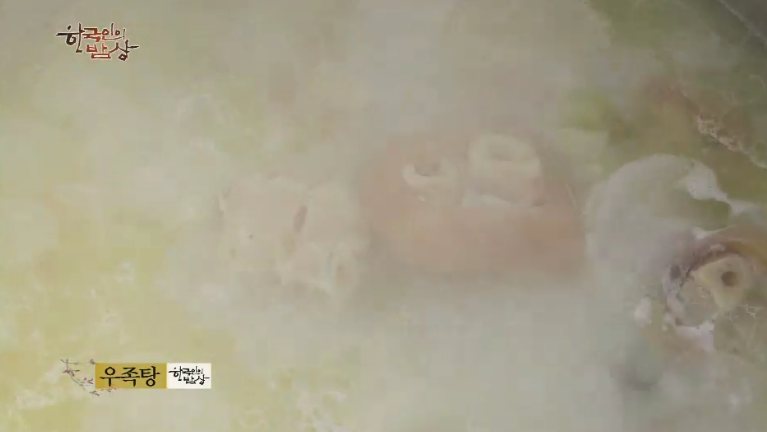 ‘우족탕’은 물에 잘 손질한 우족을 넣고 끓입니다.
