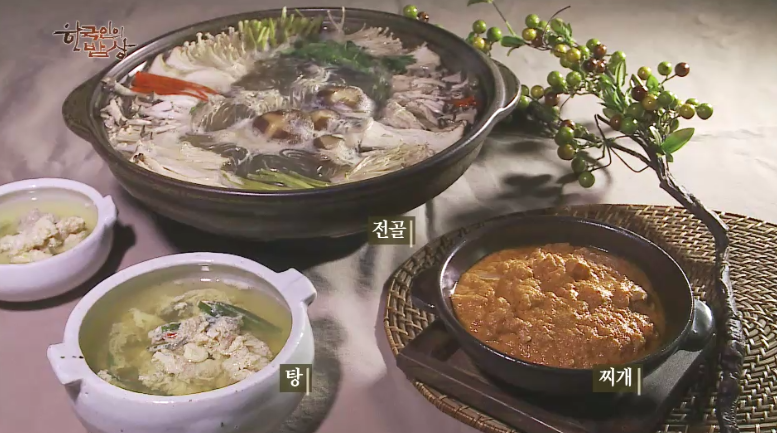 보통 물의 양의 따라 탕, 찌개, 전골로 나뉩니다. 고기, 해산물, 채소 등으로 국물을 내서 만듭니다.