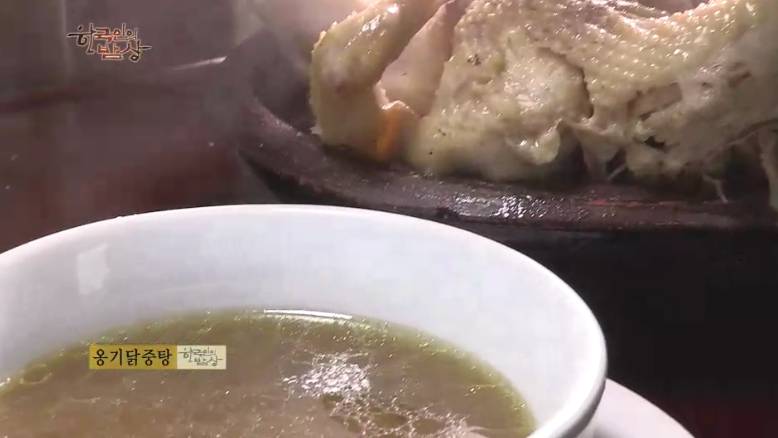 ‘옹기닭중탕’은 닭 속에 엇나무, 생강 등 약초를 뱃 속에 넣고 짚으로 밑을 묶어 준 다음 작은 옹기에 넣은 뒤에 뚜껑을 닫고 밀가루로 입구 틈을 잘 막습니다. 이것을 솥에 넣고 물을 붙고 뚜껑을 닫고 은근한 불에서 다립니다. 그리고 그 국물을 먹습니다.