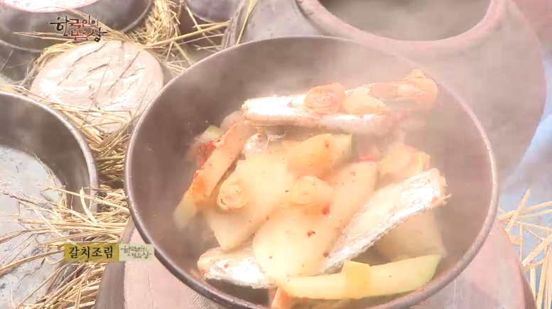 ‘갈치조림’은 갈치를 손질 하고 솥에 무를 깔고 된장 육수를 붓고 갈치를 올린 뒤 양념을 넣고 조려줍니다.