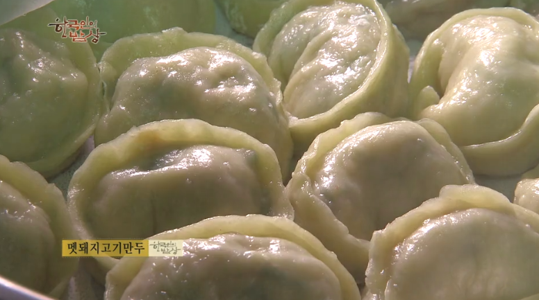 ‘멧돼지고기 만두’는 김치를 잘게 썰어서 면보에 넣고 꾹 쫘줍니다. 멧돼지고기를 잘게 다집니다. 숙주, 두부, 부추 등을 잘게 다져서 섞어서 소를 만든 뒤에 만두피에 넣고 잘 빚습니다. 그리고 김이 오른 솥에 넣고 찝니다.
