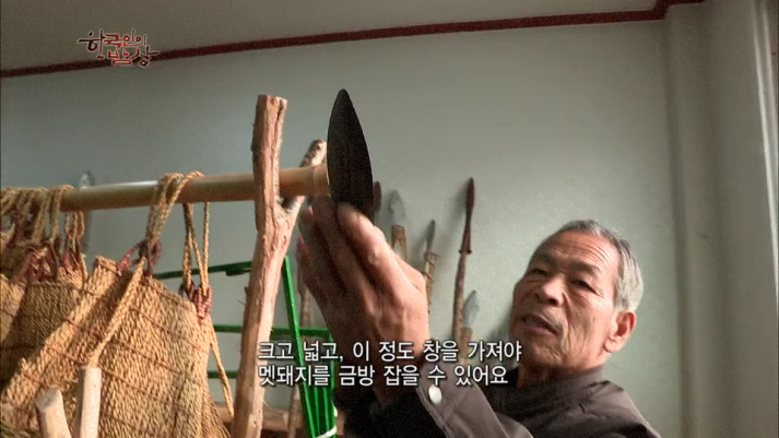 개들이 역할이 있는데 ‘썰개’라고 선두견이 찾으면 서로 합세를 해서 멧돼지를 몰아넣고 잡습니다.