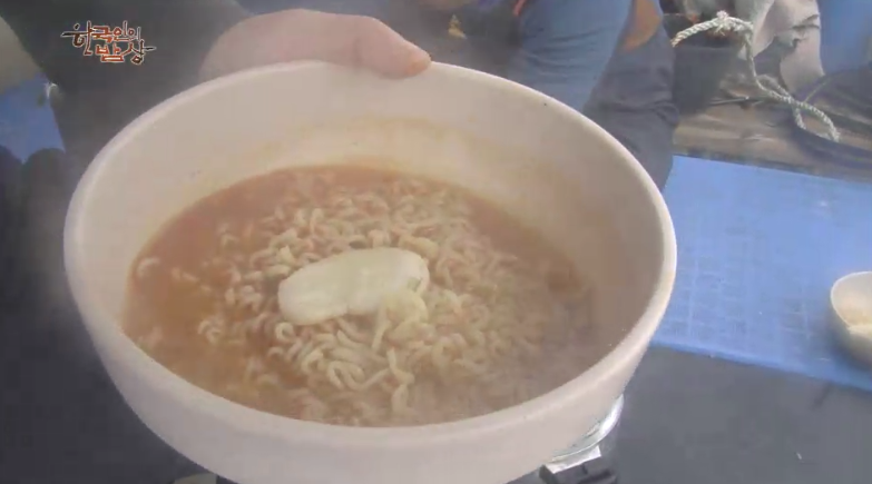 ‘키조개 라면’은 라면을 끓인 뒤에 키조개 관자를 썰어 넣고 끓입니다.