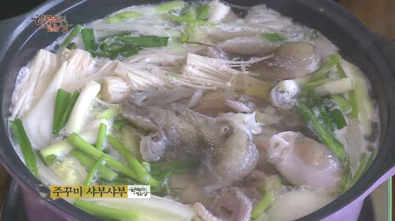 ‘주꾸미 샤브샤브’는 육수를 끓이면서 배추, 쪽파, 양파 등 야채를 넣고 그 육수에 주꾸미를 넣어 데치듯이 해서 먹습니다.