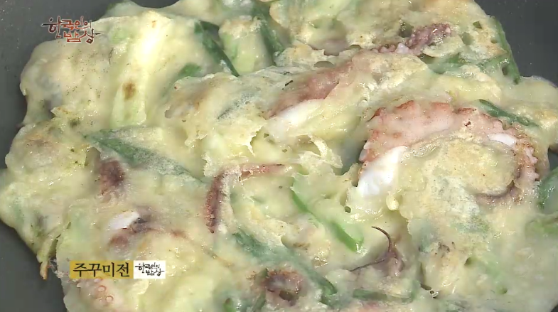 ‘주꾸미전’은 부침개 반죽에 주꾸미와 야채를 썰어 넣고 부쳐줍니다.