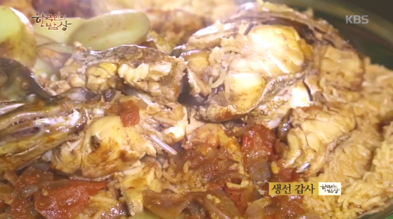 ‘생선갑사’는 냄비에 적양파를 볶다가 큼직막하게 토막낸 토마토를 넣고 볶다가 육수를 넣고 끓입니다. 냄비에 감자를 슬라이스해서 깔고 생선(함무르)을 올린 뒤에 토마토 끓인 소스를 올리고 밥을 올리고 호일로 김이 안빠지게 감싸고 뚜껑을 닫고 생선이 익을 때까지 15~20분 찝니다.