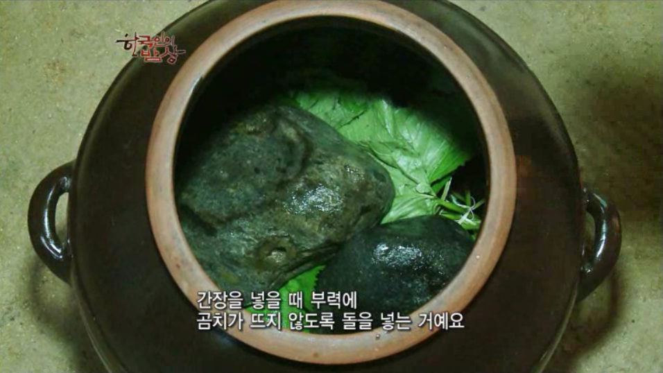 ‘곰취장아찌’는 곰취를 항아리에 넣고 간장을 넣을 때 부력에 곰치가 뜨지 않도록 돌을 넣습니다. 그리고 간장을 끊여서 붓습니다. 지피나무(=초피나무)는 고기에 넣으면 비린내나 잡냄새를 없애고 담백하게 만듭니다.