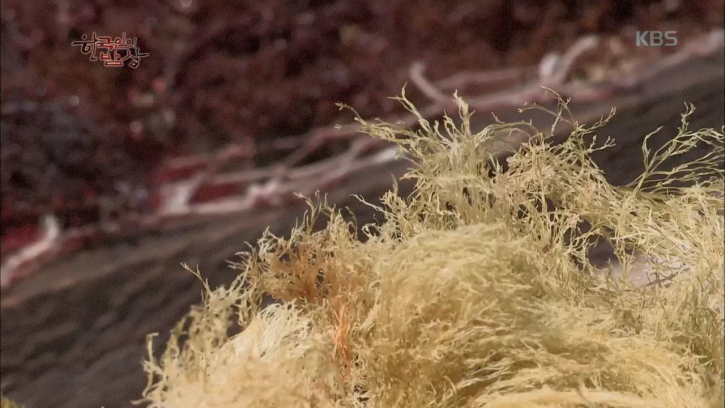 우뭇가사리(한천원료)는 잘 손질을 해서 말리고 물에 담갔다가 또 방망이로 두드려서 돌가루를 제거하면서 손질하고를 반복하면서 8일 정도를 말립니다. 하얗게 말리면 됩니다.