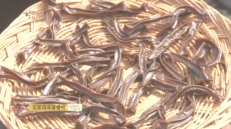 ‘묵누룽지’는 도토리묵을 만들고 솥에 남은 묵을 긁어 나온 것입니다. 옛날에는 그냥 먹기도 하고 건더기를 밥에 얹어서 쪄먹기도 하고 설탕 넣어서 쪄먹기도 했다고 합니다.