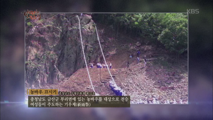 금강이 있지만 대부분 산에 있어 물을 쓸 수 없어 빗물은 생명수였습니다. 산 중턱에 걸린 영엄한 농바우를 끌어당기는 기우제가 수백년간 이어져온 이유도 이 때문입니다. 기우제를 지내고 나면 다같이 물에서 놀고 밥을 해먹었습니다.