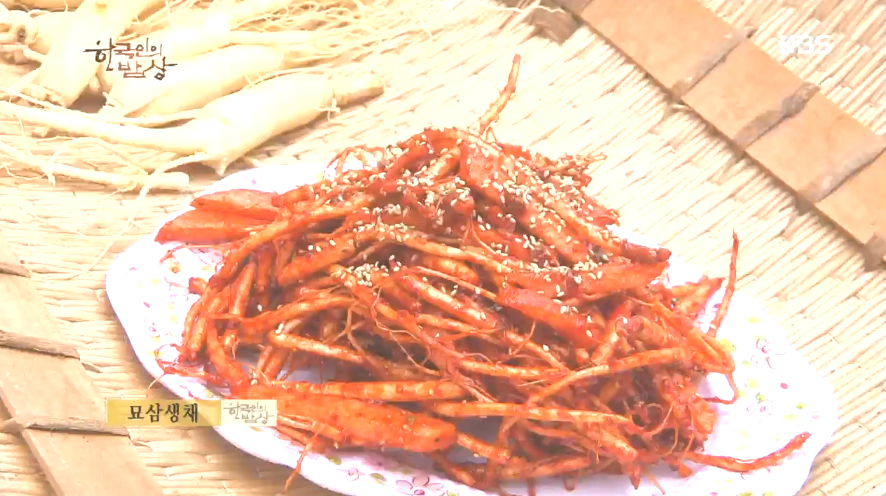 ‘묘삼생채’는 잔뿌리나 밭에 심을 수 없는 어린삼을 고추장양념에 무친 뒤에 배체를 넣고 한 번 더 섞어줍니다.