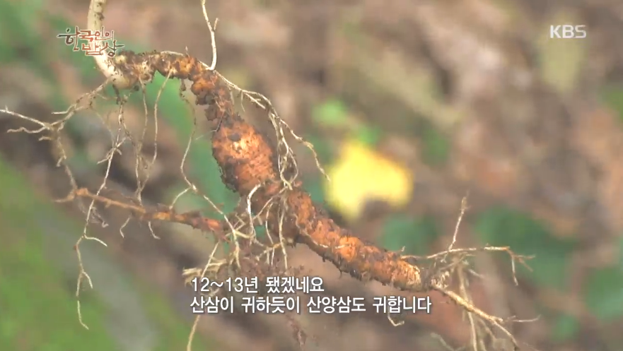 5~6년을 기다렸다가 인삼을 캡니다. 꿩이 인삼을 좋아해서 다 캐먹습니다. 왕왕대, 특대, 왕대, 짠짠이, 실실이, 황믹사, 파삼 등으로 32개로 나누어지는데 왕왕대가 제일 좋은 삼입니다. 중미가 잘 뻗어야지 인삼이 좋고 인삼색이 황색이 아니라 백색이 나와야 한다고 합니다.