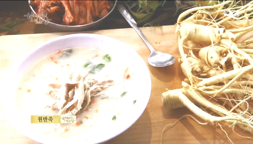 ‘원반죽’은 솥에 닭을 넣고 끓여서 건지고 불린쌀과 인삼을 넣고 푹 끓입니다. 그리고 닭살을 발라 올려줍니다. 다같이 먹기 위해 양을 늘리려고 쌀과 인삼이 많이 들어갑니다.