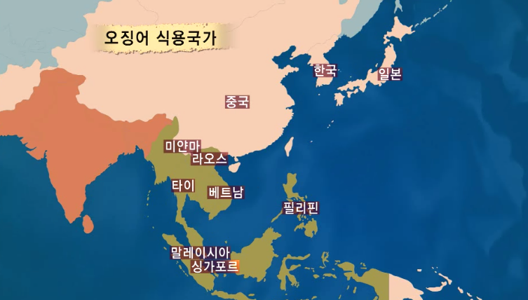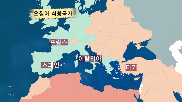 오징어는 전세계에 분포하지만 생김새가 독특한 탓인지 14개국만 먹습니다. 어획량은 일본이 가장 많고 우리나라가 가장 다양하게 이용을 합니다. 일부 남유럽 국가에서만 먹물과 칼라마리라는 작은 한치 형태의 오징어를 많이 활용합니다.