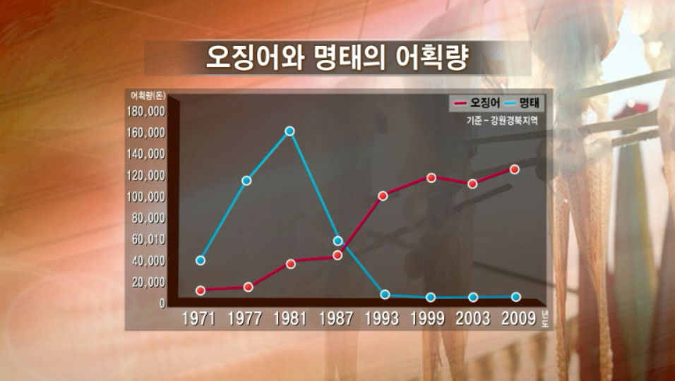 기후 변화에 따른 어업자원의 변화를 미리 예측하고 연구해온 이 곳에서 오징어 개체수가 많이 달라져서 주목하고 있습니다. 오징어는 동해안에서 상업적으로 중요한 어종이고 어획량이 가장 많은 종류의 하나이기 때문에 오징어의 자원 상태와 앞으로의 어획량 변화를 예측하기 위한 연구를 진행하고 있습니다. 오징어는 번식력이 빠리고 자기 보호력이 강해서 수온만 맍으면 잘 자란다고 합니다. 점점 늘어나는 추체입니다.
