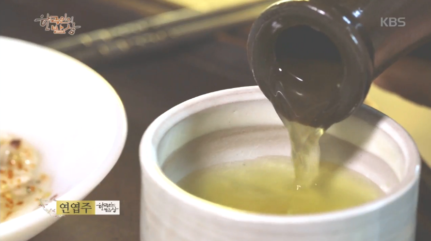 ‘연엽주’는 고들밥을 지어서 넓게 펴서 식힌 뒤에 누룩과 섞은 뒤에 물을 부으면서 버무려줍니다. 그리고 항아리에 반 정도 넣고 말린 연잎을 넣고 그 위에 또 올려줘서 숙성을 시킵니다.