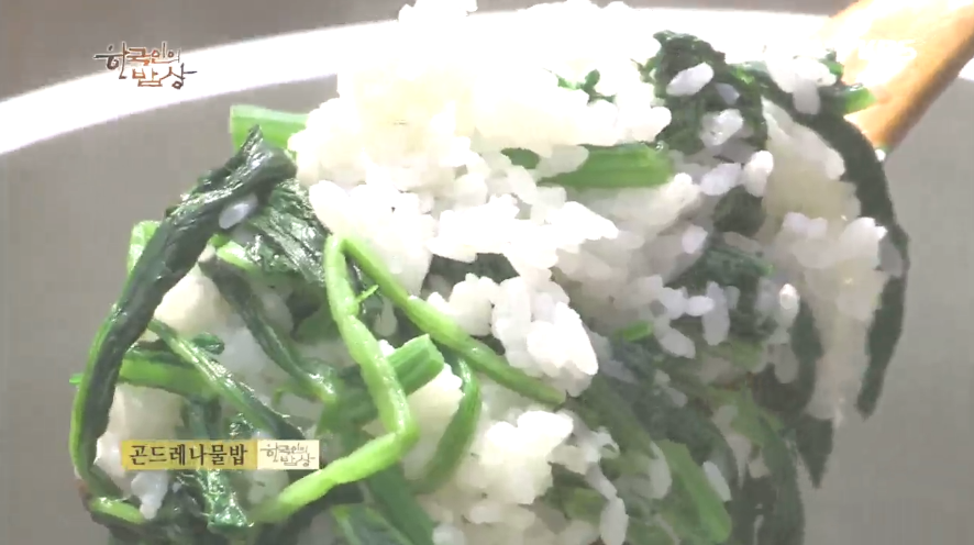 ‘곤드레 나물밥’은 생곤드레를 삶아 찬물에 씻어 꽉 쫘서 먹기 좋게 썰고 소금, 참기름을 넣고 무쳐줍니다. 그리고 자작한 물에 넣고 불린 쌀을 넣고 밥을 짓습니다.