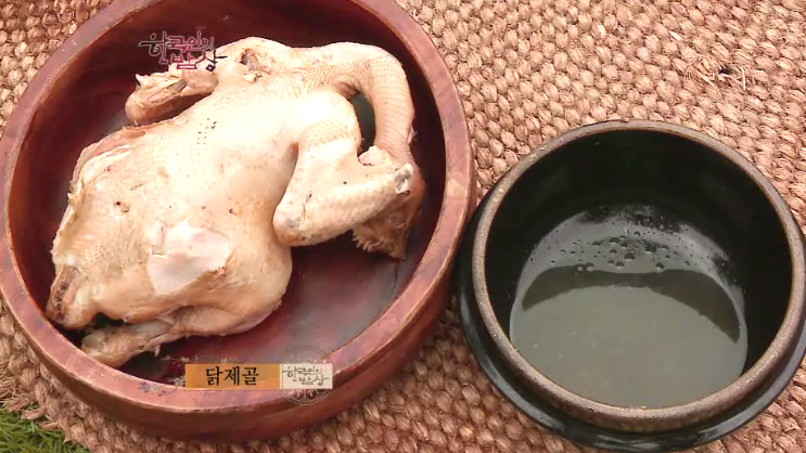 ‘닭제골’은 닭을 깨끗이 손질하고 뱃속에 참기름(고소해지라고)을 바르고 겉에도 바릅니다. 속에 마늘, 인삼, 황기 넣고 꽂이로 막아주고 솥에 물을 끊이고 그 위에 찜기 올리고 그릇을 올리고 그릇에 닭을 넣고 뚜껑 닫아 중탕을 합니다. 중탕하면 잡물이 들어가지 않고 닭의 영양분만 남기 때문입니다. 다 삶아지면 닭, 마늘, 참기름, 황기의 진액이 그릇 곳에 남는데 진액이 엄청 좋아서 부모님들이 마셨다고 합니다.