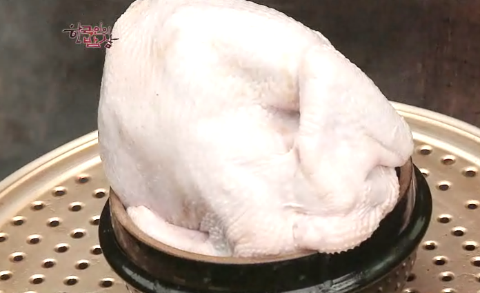 ‘칠향계’는 대추, 인삼, 수삼, 엇나무, 생강, 황기, 7가지를 넣고 6시간 고아내서 육수를 만들고 육수에 닭을 넣고 베보자기에 찹쌀, 밤 넣고 같이 넣어서 고아냅니다. 그리고 한 그릇에 담아 지단, 표고버섯, 고추 등 고명을 올려 나갑니다.