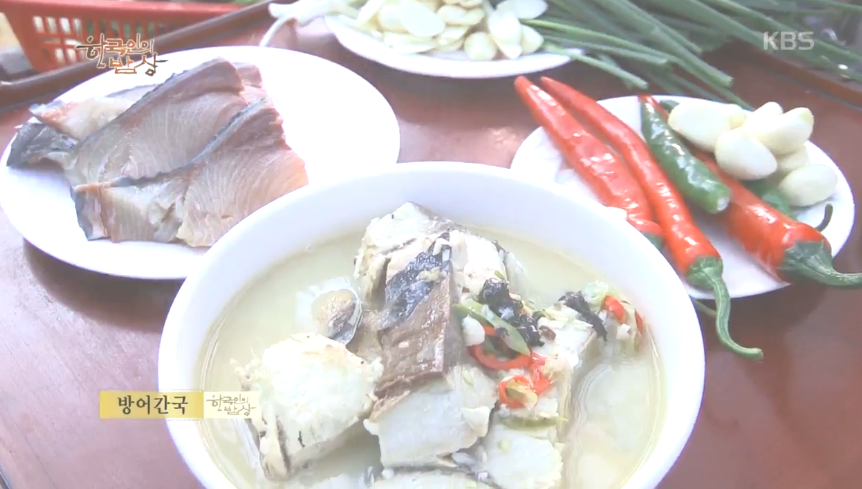 ‘독간방어간국’은 방어를 소금에 절여서 항아리에 두면 나오는 국물을 떠서 밥을 지을 때 솥 속에 같이 넣고 밥을 짓습니다.