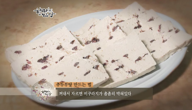 미꾸리지를 항아리에 넣고 하루 3번씩 물을 갈아주고 5~6일동안 진흙을 토해내게 합니다. 솥에다가 두부와 물을 넣고 미꾸라지 50~60마리를 넣은 후 뿔을 떼면 미꾸라지가 열을 피해 두부 속으로 들어 갑니다. 불을 계속 떼면 물이 점점 끊고 미꾸라지가 익습니다. 꺼내 면보에 붓고 물기를 충분히 빼고 틀에 넣고 돌로 눌러서 ‘추두부’를 만든 다음 썰어서 참기름을 두루고 전을 부칩니다. 밑에 야채를 깔고 위에 두부를 올리고 메밀가루 계란 푼 것 등을 넣어 탕을 끊이는데 이 때 다진마늘, 된장, 고추장으로 만든 양념장을 넣고 끊입니다.