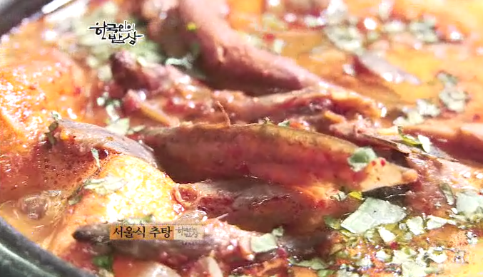 ‘추탕’은 양지머리로 육수를 끊여 뽀얀국물을 내고 고기를 찢어 넣고 거기에 매운고추장과 고춧가루로 칼칼하게 맛을 냅니다. 버섯, 파 등 각종 채고를 넣고 한소끔 끊이다가 미꾸라지를 통째로 넣어 끊입니다. 그리고 두부, 호박 넣고 계란물도 넣고 유부를 넣습니다. 마지막으로 깻잎다진 것을 뿌려 마무리 합니다.