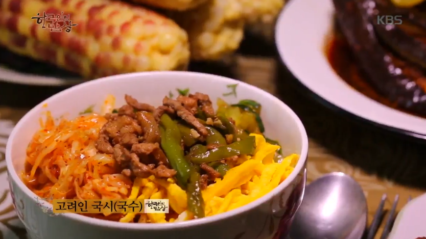 ‘고려인국시’는 오이, 양배추, 돼지고기 등 고명을 각각 따로 볶아 줍니다. 물에 간장, 토마토 다이스 등을 넣어 국물을 만들고 차갑게 식힙니다. 그릇에 국수를 넣고 고명을 올리고 차가운 국물을 담아줍니다.