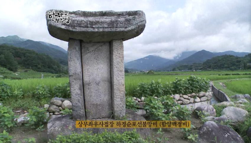 소와 인연이 깊은 함양 땅에는 ‘상무좌우사접장 하경순포선불망비(함양백정비)’라는 범상치 않은 비석이 서있습니다. 가장 천한 백정에게 임금님이 효자비를 내린 것입니다. 한 선비가 눈 먼 어머니를 위해 백정으로 나섰습니다. 품삯대신 소의 간을 받아서 매일 같이 어머니를 봉양한지 천일이 되던날 큰 비가 내려 효자는 강을 건너지 못하게 됩니다. 그러자 갑지기 강이 갈라지고 효자가 무사히 어머니에게 간을 봉양하자 기적처럼 눈을 떴다고 전해집니다.